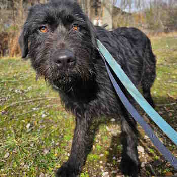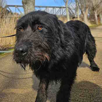 Parchís es un cruce de drahthaar muy amable y pacífico. Le encanta la gente y es muy sereno y manso. Es una delicia llevarle de paseo porque nunca tira de la correa. Se lleva perfectamente bien con otros perros y es increíblemente bueno. Muy sociable y abierto. Tiene unos ojos de color caramelo que resaltan como una luz en plena noche. Déjate seducir por sus barbas, su flequillito y su mirada inteligente!